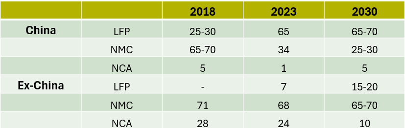 The emergence of LFP variants with improved energy density, such as M3P and lithium manganese iron phosphate could accelerate the process.