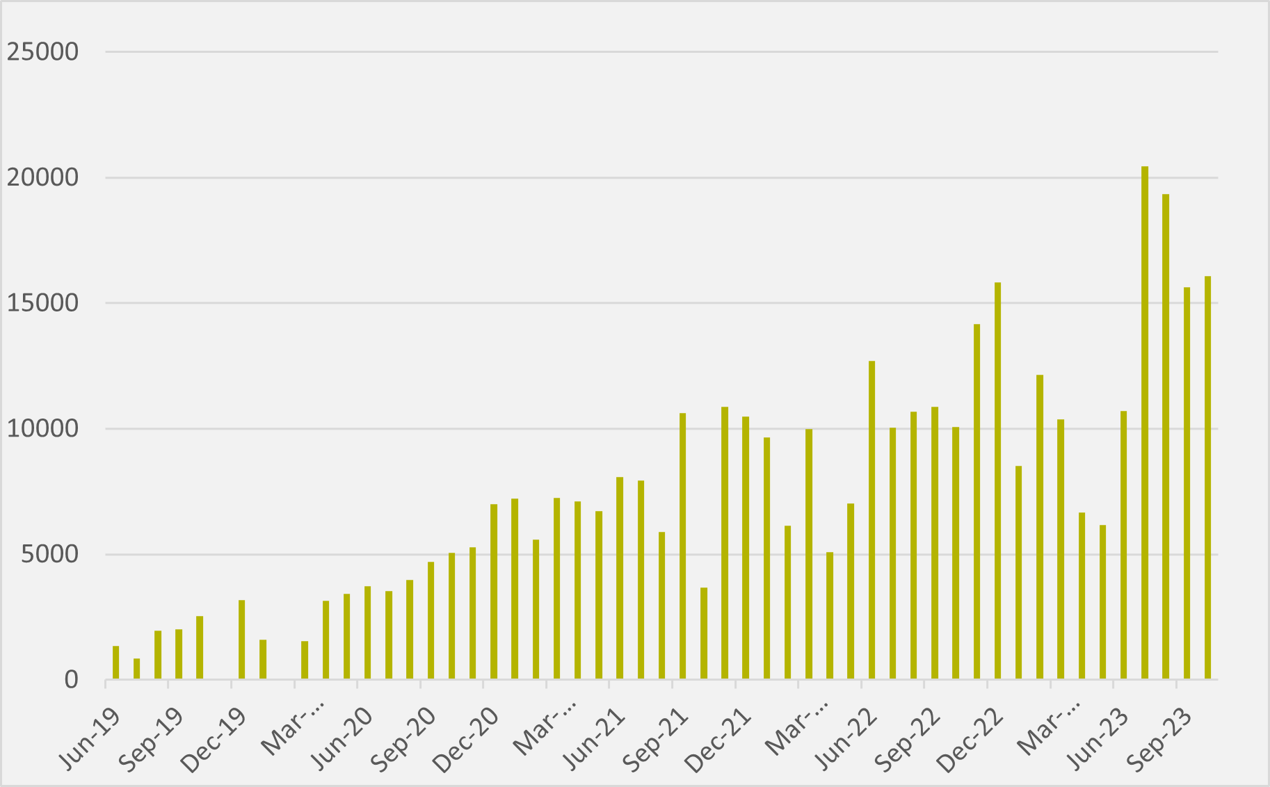 Nio was not able to join its NEV peers in reporting a record month in October. But its 16,704 sales was its third best-ever performance behind July and August. Four of the firm’s five best-selling months have now come in the second half of 2023 (see Fig.5).
