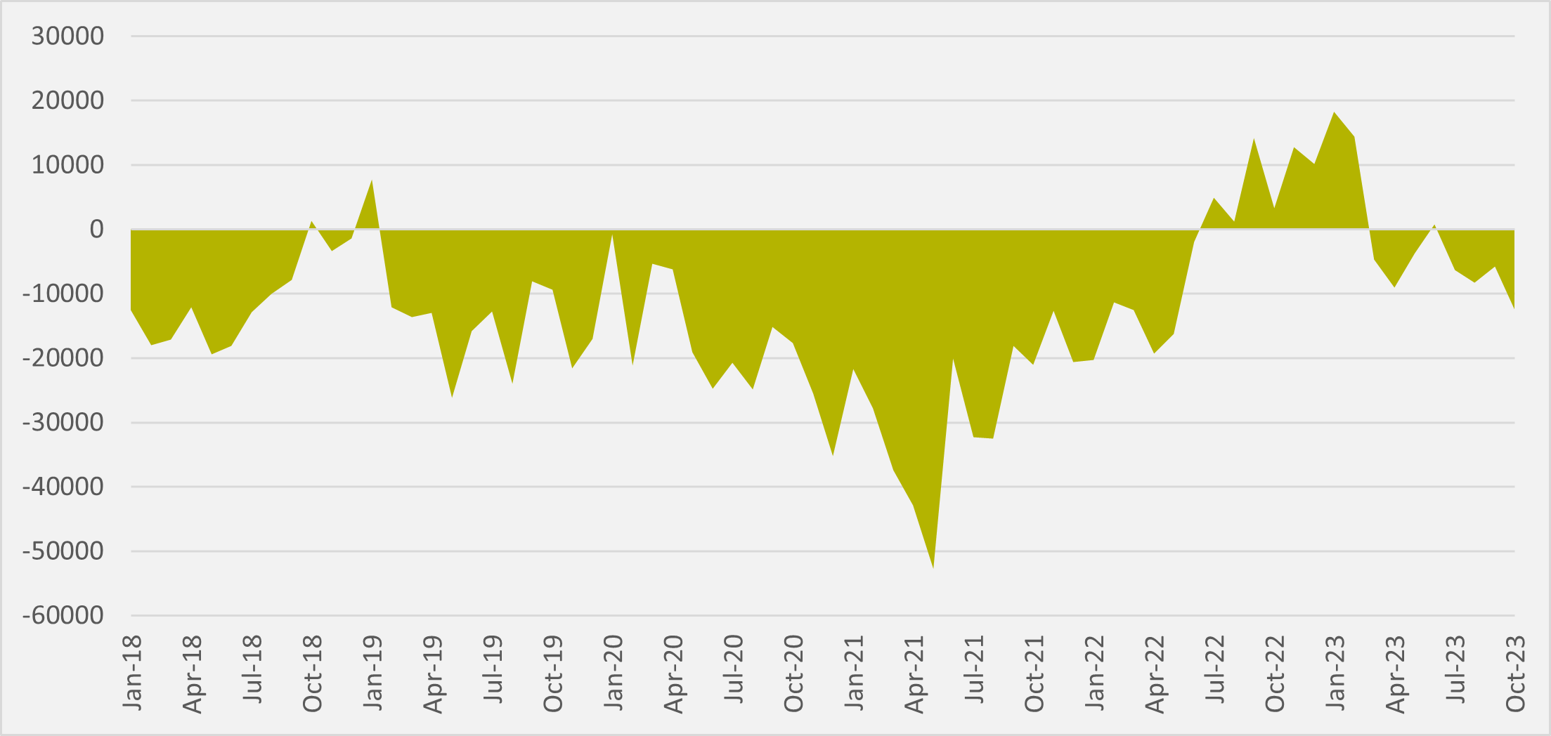 Actual numbers as we have gone further into the second half the year have begun to lag that forecast. But that should not necessarily be a surprise — 67pc year-on-year growth would have meant over 115,000 BEVs sold in September, October and November as last year’s sales in these months jumped up to around the 70,000 mark. And maintaining that same growth for December would need over 130,000 BEVs sold, after Dec’22 saw almost 80,000 unit shifted.