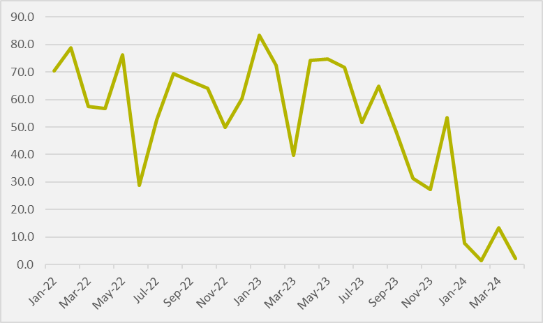 Separate data from research firm Motor Intelligence finds that 50.5pc of the 90,598 BEVs registered in April were Teslas. Although Tesla's sales are showing signs of a slowdown, the firm's market share has not been materially dented since slipping to around the 50pc mark during 2023.